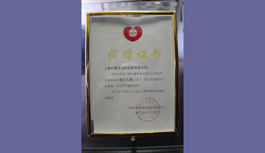 2016年,上海紅箭自動化設備有限公司為上海市慈善基金會捐款 2016